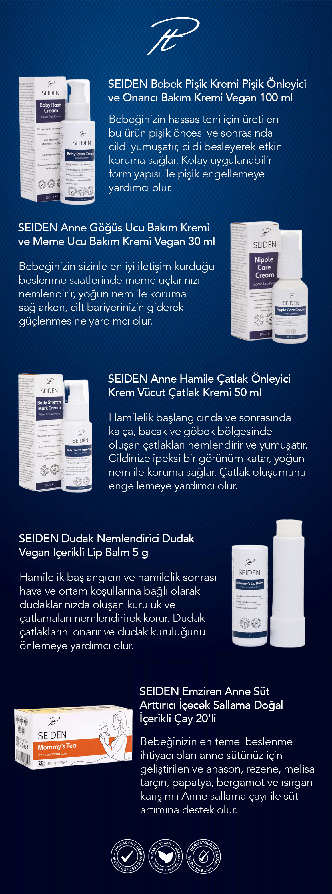 Göğüs ucu kremi, Trendyol’un geniş ürün yelpazesinde birçok marka ve çeşit ile sunulmaktadır. Seiden doğal içerikli ve hipoalerjenik formüllere sahip yerli üreticilerin kremlerini de Trendyol’da bulabilirsiniz. Bu kremler, dermatolojik testlerden geçmiş, cilt pH’ına uygun ve alerjik reaksiyona neden olmayan içeriklerle üretilmiştir. Emzirme döneminde göğüs ucu çatlakları, kuruluk ve kanama gibi sorunlara karşı etkili çözümler sunan bu ürünleri değerlendirin.